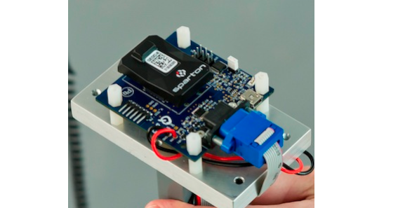 Close-up of an electronic circuit board with various components and connectors.
